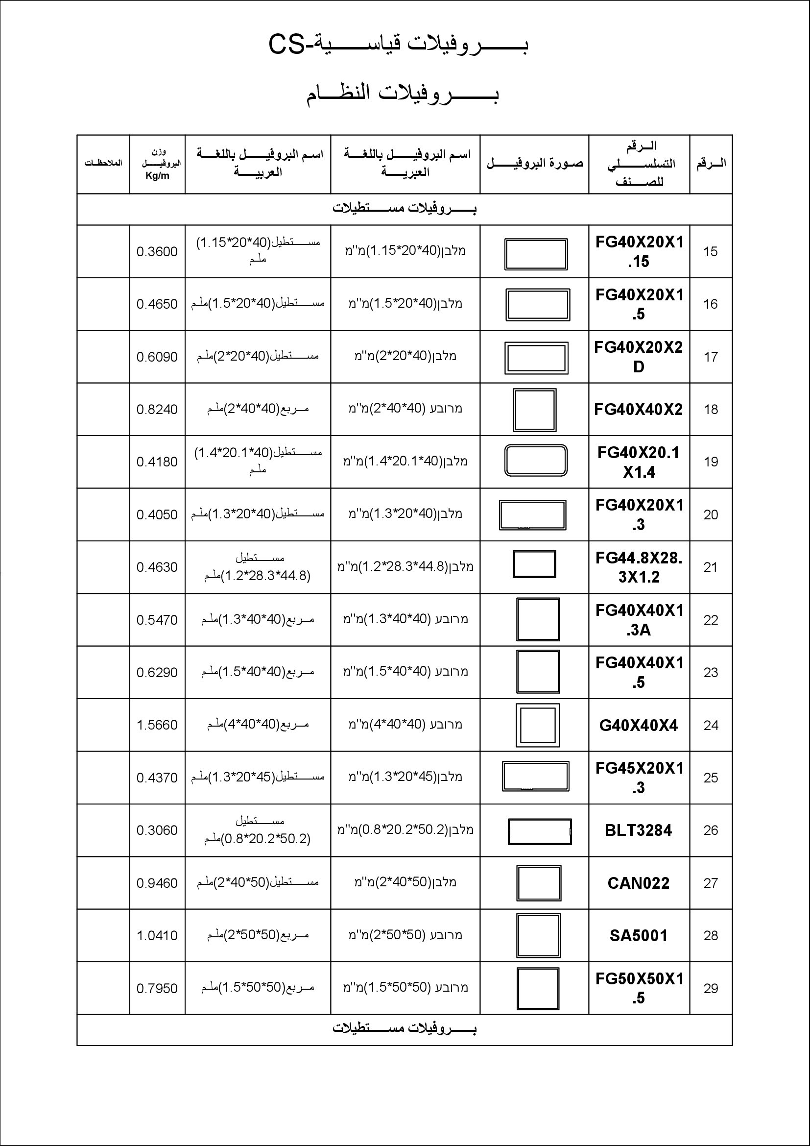 بروفيلات قياسية